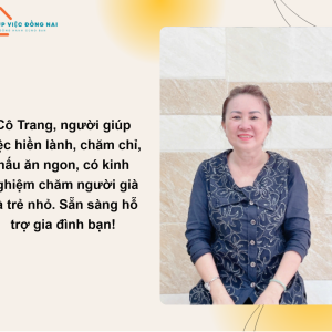 - Cô quý mến người lớn tuổi, ông bà lớn tuổi hay ông bệnh nằm 1 chổ cần người hỗ trợ chăm sóc sức khỏe cô tự đều làm được, chị không ngại cực, vệ sinh cho ông bà, hỗ trợ người bệnh dìu dắt di chuyển được, chăm lo cơm nước thuốc men đúng giờ cho người bệnh.