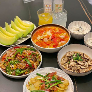 Nhà có 3 người lớn, đi làm với công tác thường xuyên, chủ yếu ngày ăn bữa tối.