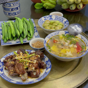 Nhà có 3 người lớn, đi làm với công tác thường xuyên, chủ yếu ngày ăn bữa tối.