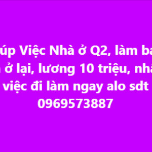 Giúp Việc Nhà ở Q2, làm bao ăn ở lại, lương 10 triệu, nhận việc đi làm ngay alo sdt 0969573887