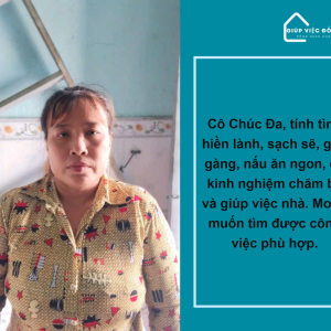 Em Chúc Đa cần tìm việc làm giúp việc nhà/chăm bé khu vực [Thành phố/Tỉnh]. Chị nào có nhu cầu liên hệ em qua SĐT: 0.9.6.5.55.00.36 nha! Em cảm ơn ạ. 🥰