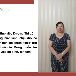 + Chị tính tình hiền lành chịu thương chịu khó làm việc chu toàn trong gia đình, rất vui vẻ nhiệt tình, nên có việc là làm liền.