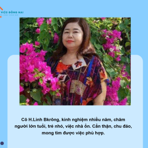 + Chuyên chăm ông bà bị tai biếm nằm một chỗ, bệnh, lẫn. Cho ông bà ăn, vệ sinh, tối dậy thay bỉm vệ sinh, dắt ông bà đi tiểu tiện. Chị biết cách dỗ dành ông bà, nói chuyện tâm sự với ông bà, lấy thuốc ông bà uống, vệ sinh phòng ông bà sạch sẽ. Biết cách giữ gìn và chăm nom ông bà, chăm sóc tận tình tận tâm