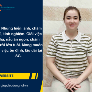 + Chị là người hiểu chuyện, hiểu tâm lý người lớn tuổi, biết cách quan tâm săn sóc cho các bác, không ngại vệ sinh tắm rửa bồng bế. Biết cách trò chuyện cho ông bà ăn, uống thuốc đúng giờ, thức đêm với ông bà được