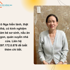 +Tính chị hiền lành, thật thà, chịu khó trong công việc. Biết cách sắp xếp, quán xuyến công việc nhanh chóng theo yêu cầu của chủ nhà