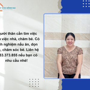 Chị NGUYỄN THỊ PHƯỚC, sinh năm 1976, quê Đồng Nai cần tìm việc