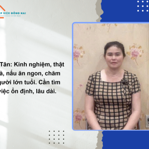 + Biết nấu các món ăn truyền thống như canh chua, cá kho, thịt kho tàu, nêm nếm khẩu vị 3 miền. Có thể đi chợ, lên thực đơn đơn giản theo ngày.