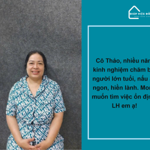 + Cô nấu ăn khẩu vị miền Trung và miền Nam, nấu được nhiều món, tùy chỉnh nêm nếm theo khẩu vị chủ nhà.