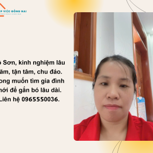 + Tính tình chị là người giản dị, chân chất, thái độ công việc tốt, hiền lành hiểu chuyện, việc nhà cửa nấu ăn dọn dẹp cô có thể phụ làm được.