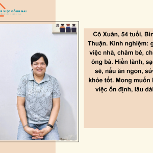 Công việc mong muốn: Giúp việc nhà – Chăm em bé – Chăm sóc ông bà.