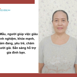 + Cô rất thích em bé, trước giờ cô từng chăm bé từ sơ sinh đến lớn, chăm bụ bẫm tăng cân. Tối ngủ đêm với bé. Cô biết nấu đồ ăn dặm cho bé ( tự lên thực đơn cho bé) , biết sử dụng các thiết bị hiện đại cho bé, vỗ ợ, tắm,…..