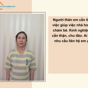 Em tìm việc giúp cô Ngoãn. Cô hiền lành, chăm chỉ, nấu ăn ngon các món Bắc. Ưu tiên việc nhà, phụ chăm bé. Sức khỏe tốt, không ngại việc. Liên hệ: 0976.899083 (gặp em) ạ.