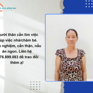 Em đăng giúp người thân đang tìm việc làm giúp việc nhà hoặc chăm bé ạ. Cô có kinh nghiệm, làm việc cẩn thận và nấu ăn ngon. Mong mọi người chia sẻ giúp em với ạ! Ai có nhu cầu liên hệ 0976.899.083 Cảm ơn mọi người nhiều!
