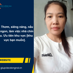 Cô có kinh nghiệm 4 năm giúp việc nhà và nấu ăn tại Thủ Đức. Trước đó, cô cũng đã có nhiều năm nội trợ trong gia đình, nên rất am hiểu công việc gia đình.
